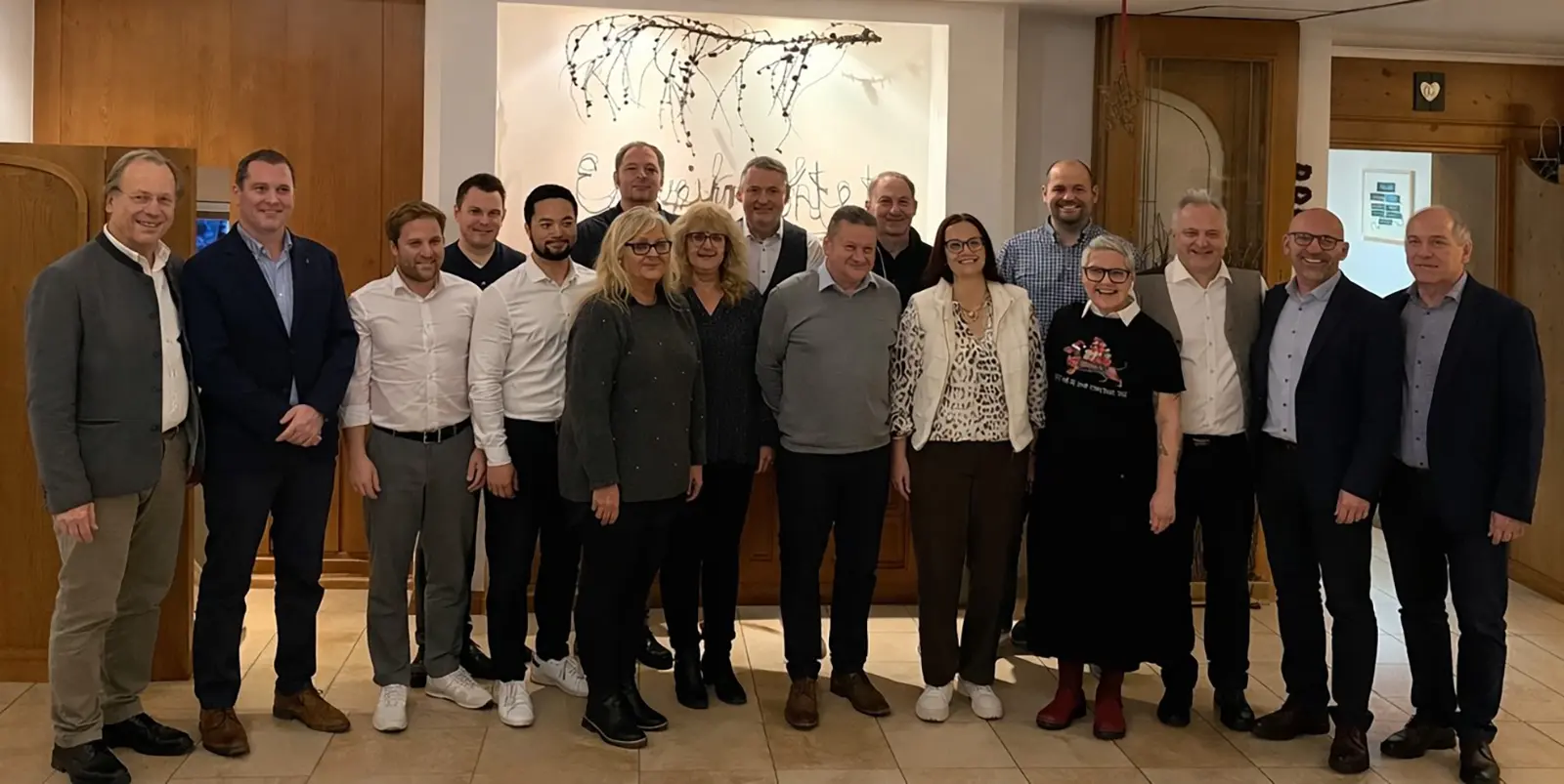 „Gro­ße Freu­de macht es uns jedes Jahr zu sehen, wie vie­le Mit­ar­bei­te­rin­nen und Mit­ar­bei­ter unse­rer Ein­la­dung fol­gen“, beton­ten die bei­den Geschäfts­füh­rer der Leeb­mann Grup­pe bei der Begrü­ßung. Ihren Dank für die lang­jäh­ri­ge gute Zusam­men­ar­beit sprach die Geschäfts­lei­tung der Leeb­mann Grup­pe den ins­ge­samt 25 Betriebs­ju­bi­la­ren des Jah­res 2025 im Rah­men einer Fir­men­fei­er aus: von links im Bild Bernd Karo­li (Geschäfts­füh­rer), Andre­as Con­rad (Lei­ter Ver­kauf), Chris­to­pher Luger (Ver­kaufs­be­ra­ter, 20 Jah­re), Cars­ten Fussan (Tei­le­ver­trieb, 25 Jah­re), Ben Le (Ver­kaufs­be­ra­ter, 10 Jah­re), Juli­an Man­dl (Kfz-Mecha­tro­ni­ker, 20 Jah­re), Karin Fritz (Ver­kaufs­as­sis­ten­tin, 20 Jah­re), Iris Allen­din­ger (Leebmann24, 25 Jah­re), Gün­ther Graml (Lei­ter Tei­le­ver­trieb, 40 Jah­re, jung geblie­ben und eine wich­ti­ge Stüt­ze am Stand­ort Pas­sau), Kon­rad Kram­mer (Lei­ter Ver­wal­tung, 25 Jah­re), Chris­ti­an Jan­ca (Kfz-Mecha­tro­ni­ker, 15 Jah­re), Nina Marold (Buch­hal­tung, 20 Jah­re), Dani­el Sei­der (Lei­ter IT Leebmann24, 20 Jah­re), Mela­nie Feher (Leebmann24, 10 Jah­re), Her­bert Scholz (Buch­hal­tung, 40 Jah­re, der Mann, der äußerst ver­läss­lich für die Bilan­zen zustän­dig war und nun in den wohl­ver­dien­ten Ruhe­stand ver­ab­schie­det wur­de), Gre­gor Leeb­mann (Spar­ten­lei­ter After Sales), Tho­mas Leeb­mann (Geschäfts­füh­rer). Nicht auf dem Bild wei­te­re Jubi­la­re: Hel­mut Hartl (Leebmann24, 45 Jah­re), Alfred Winklho­fer (Dis­po­si­ti­on, 40 Jah­re), Nata­scha Krem­ser (Dis­po­si­ti­on Motor­rad, 30 Jah­re), Wojciech Kazi­or (Tei­le­ver­trieb, 30 Jah­re), Laris­sa Vogl (Lei­tung Mar­ke­ting, 20 Jah­re), Moni­ka Sick­lin­ger (Mar­ke­ting, 20 Jah­re), Mar­kus Bau­mann, (Ver­kaufs­be­ra­ter, 20 Jah­re), Juli­an Ascher (Tei­le­ver­trieb, 15 Jah­re), Phil­ipp Mühl­bau­er (IT, 10 Jah­re), Micha­el Laus­ecker (Tei­le­ver­trieb, 10 Jah­re), Roland Eng­hu­ber (Ser­vice­be­ra­ter, 10 Jah­re), Niklas Düls­ner (Tei­le­ver­trieb Motor­rad, 10 Jah­re)