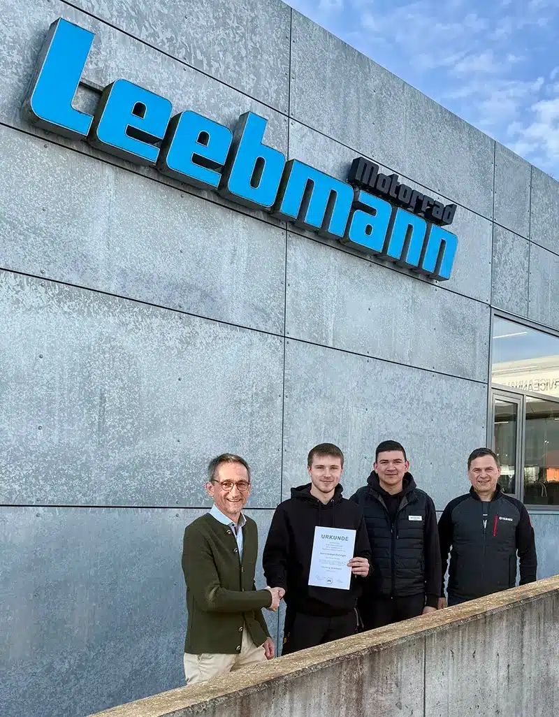 Motorrad Leebmann ist stolz auf die herausragende Leistung von Samuel Eichinger und gratuliert herzlich zu diesem besonderen Erfolg. Die Auszeichnung als Jahrgangsbester würdigt nicht nur sein fachliches Können, sondern auch sein außergewöhnliches Engagement, seine Einsatzbereitschaft und seine große Leidenschaft für den Beruf. Solche Leistungen stehen zugleich für die hohe Qualität der Ausbildung und sind ein wichtiger Beitrag zur Zukunft des Kfz-Handwerks.